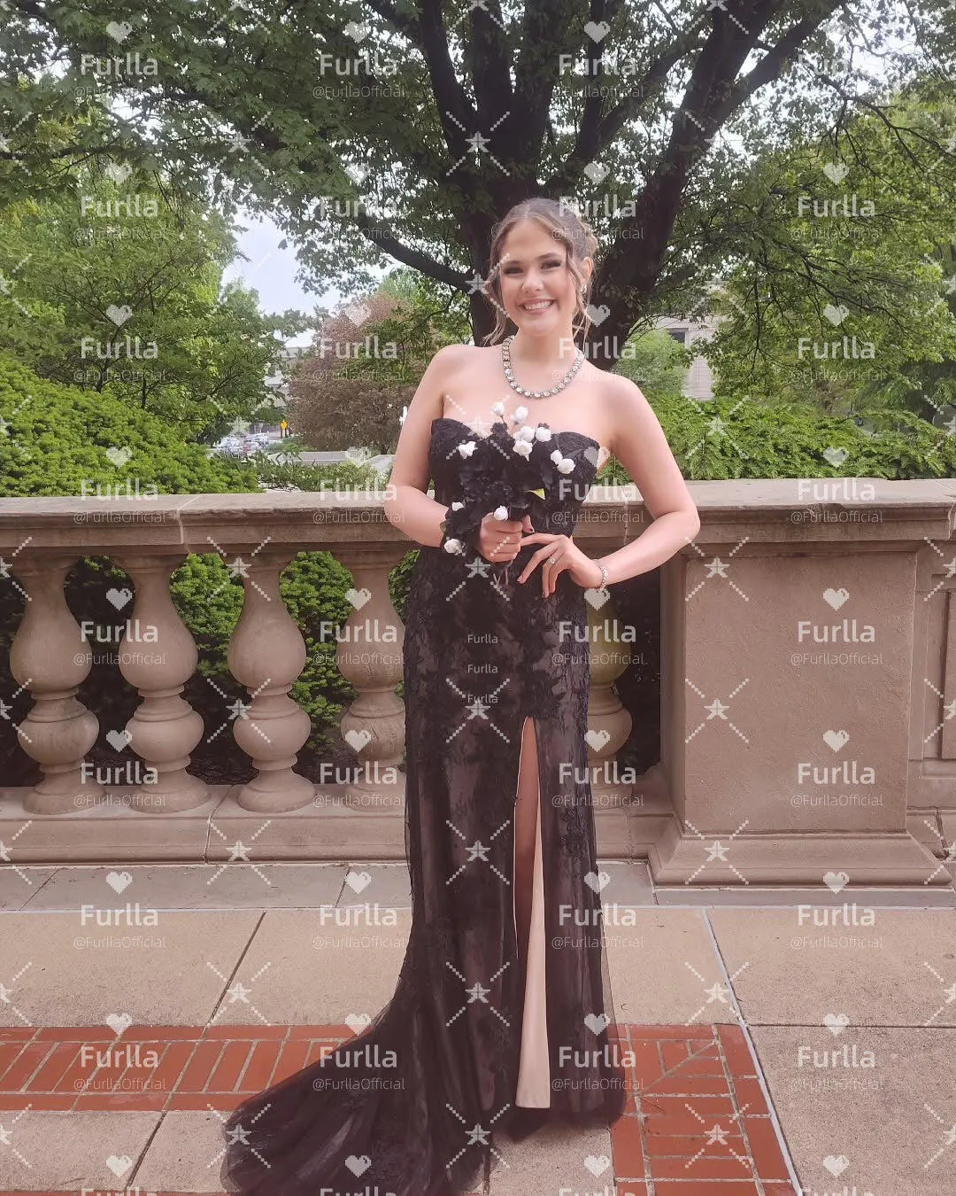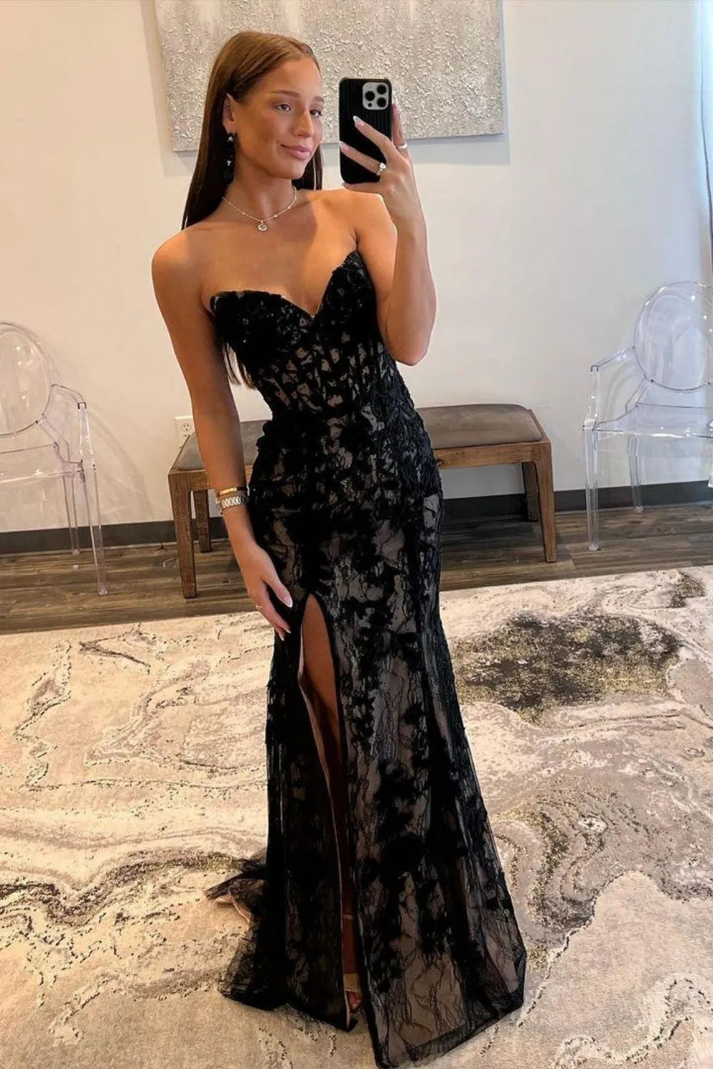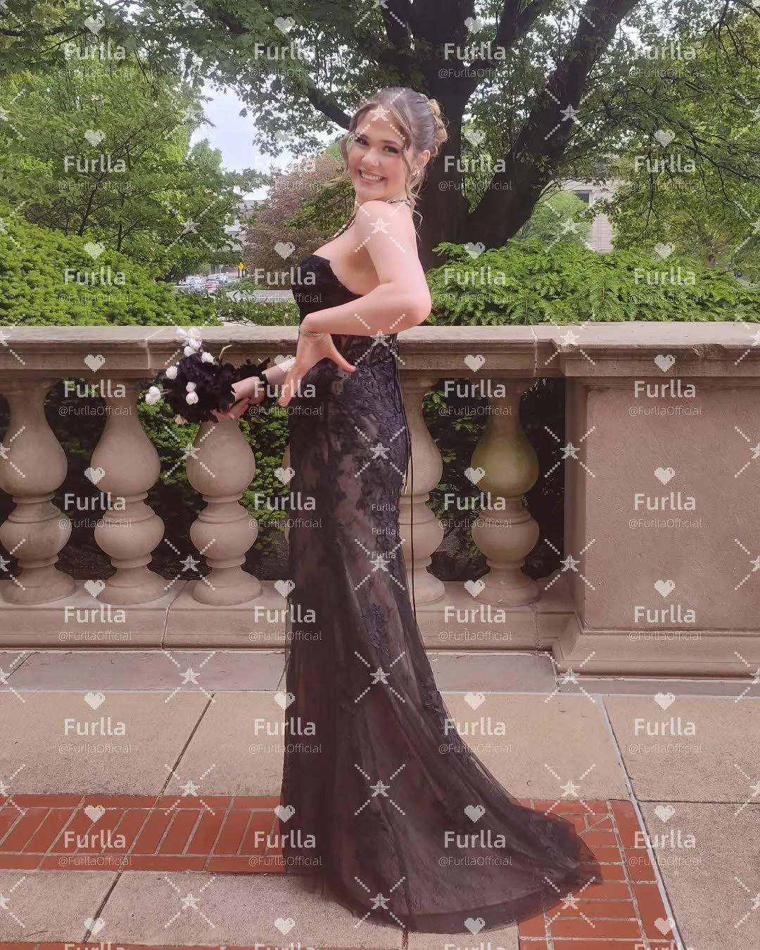 Exude sophistication in this Chic Black Strapless Mermaid Prom Dress with Sweep Train. Designed with a structured strapless bodice and elegant lace-up back, this gown hugs your figure in all the right places. Intricate appliques add a touch of romance, while the dramatic mermaid silhouette and sweeping train create a stunning red-carpet effect. Perfect for prom or any formal event where timeless glamour is a must.