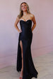 Turn heads in this sultry black satin prom dress. The sweetheart corset bodice sculpts your figure with elegant structure, while sheer side panels add a bold, modern edge. Finished with a sleek thigh slit for dramatic movement, this gown blends sophistication and allure—perfect for prom, galas, or any formal night where you want to make a striking statement.