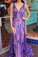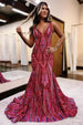Turn heads in this bold pink glitter mermaid prom dress, featuring dazzling patterned sequins that sparkle with every step. The fitted silhouette accentuates your curves, while the dramatic V-back adds a touch of sultry sophistication. Perfect for prom, pageants, or formal evening events, this gown blends glamorous sparkle with modern design for an unforgettable, show-stopping look.
