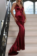 Make a timeless entrance in this rich burgundy satin mermaid prom dress. The sleek spaghetti straps frame a flattering neckline, while the curve-hugging satin silhouette enhances your figure with smooth, elegant shine. A daring open back adds a touch of modern allure, creating the perfect balance of sophistication and glamour. Ideal for prom, formals, and evening events, this dress delivers classic beauty with a striking, memorable finish.