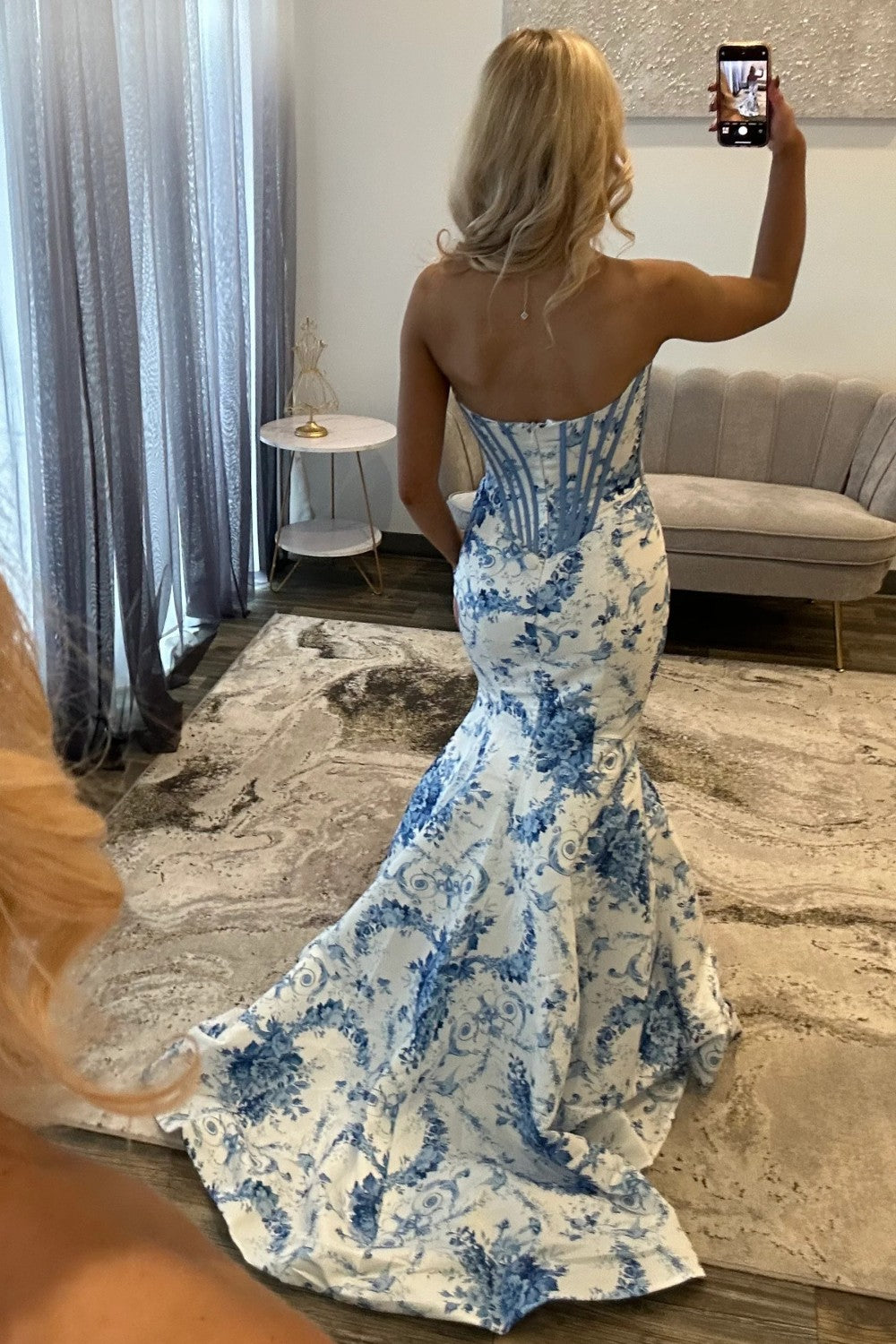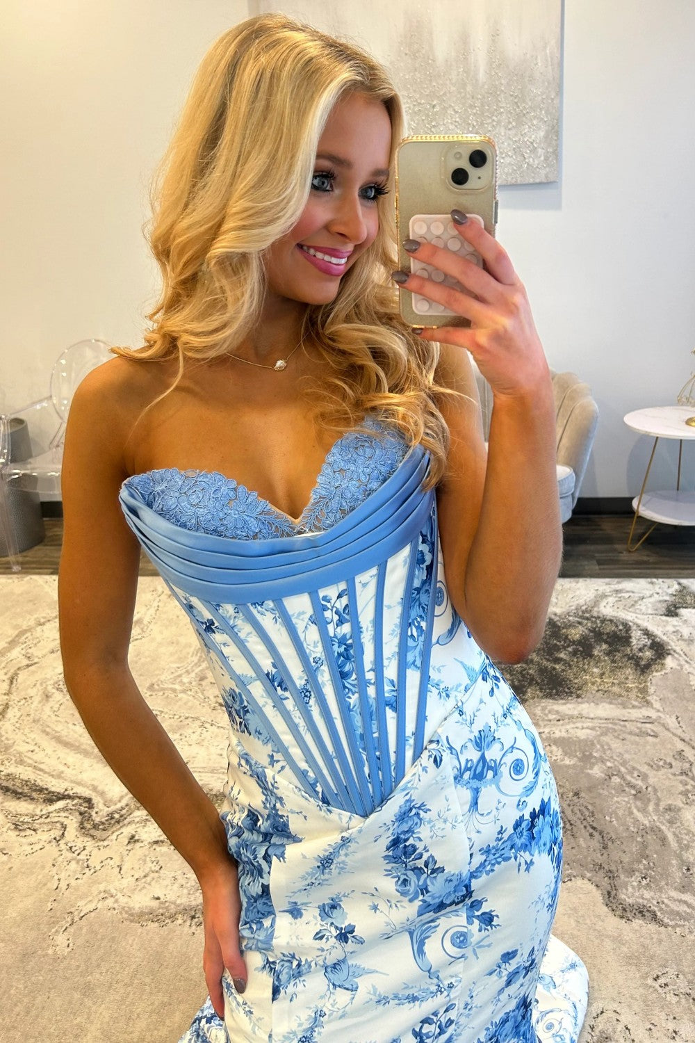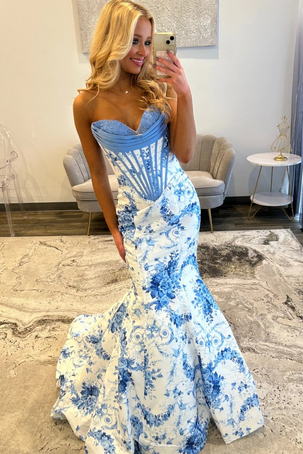 Fall in love with the refined beauty of this Charming Mermaid Sweetheart Blue Corset Prom Dress with Appliques. Featuring a romantic sweetheart neckline, this elegant gown highlights the neckline while adding a soft, feminine touch. The structured corset bodice offers a flattering, supportive fit that enhances your natural curves.