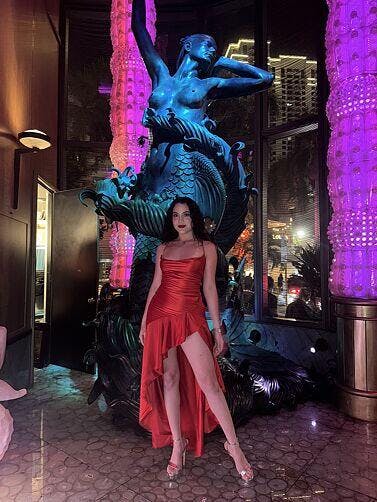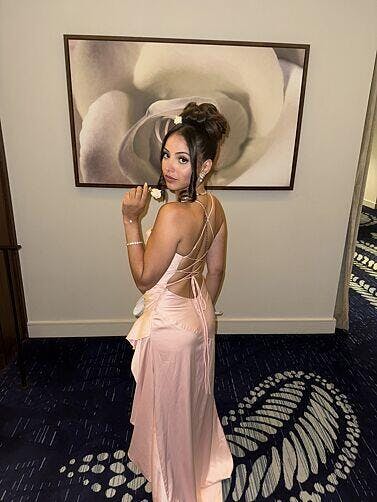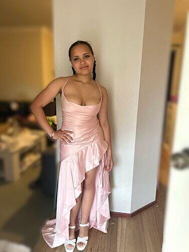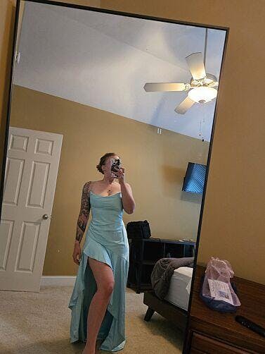 A beautiful dress with a great cut and very comfortable to wear. It's elegant and sexy at the same time. I feel like the queen of the ball in this dress.