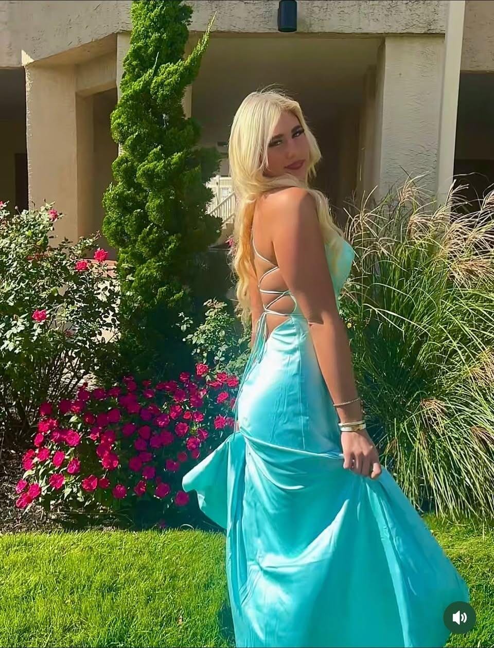 This dreamy gown features delicate spaghetti straps that frame your shoulders gracefully, paired with a flattering A-line silhouette that flows with soft elegance. The serene blue hue adds a fresh and romantic touch, while the ruffled detailing brings movement, charm, and a whimsical feel to the entire look.