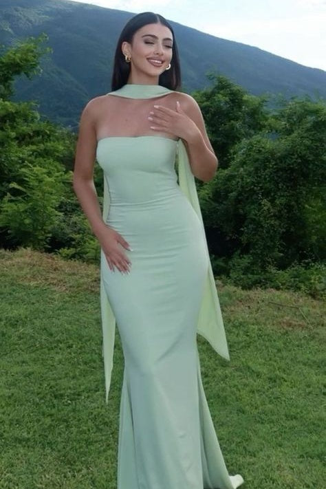 Radiate timeless elegance in this classic yellow mermaid prom dress. The strapless neckline beautifully showcases your shoulders, while the figure-hugging mermaid silhouette accentuates your curves with sophistication. A flowing floor-length hem adds drama, and the matching scarf brings a versatile, graceful touch to complete the look.