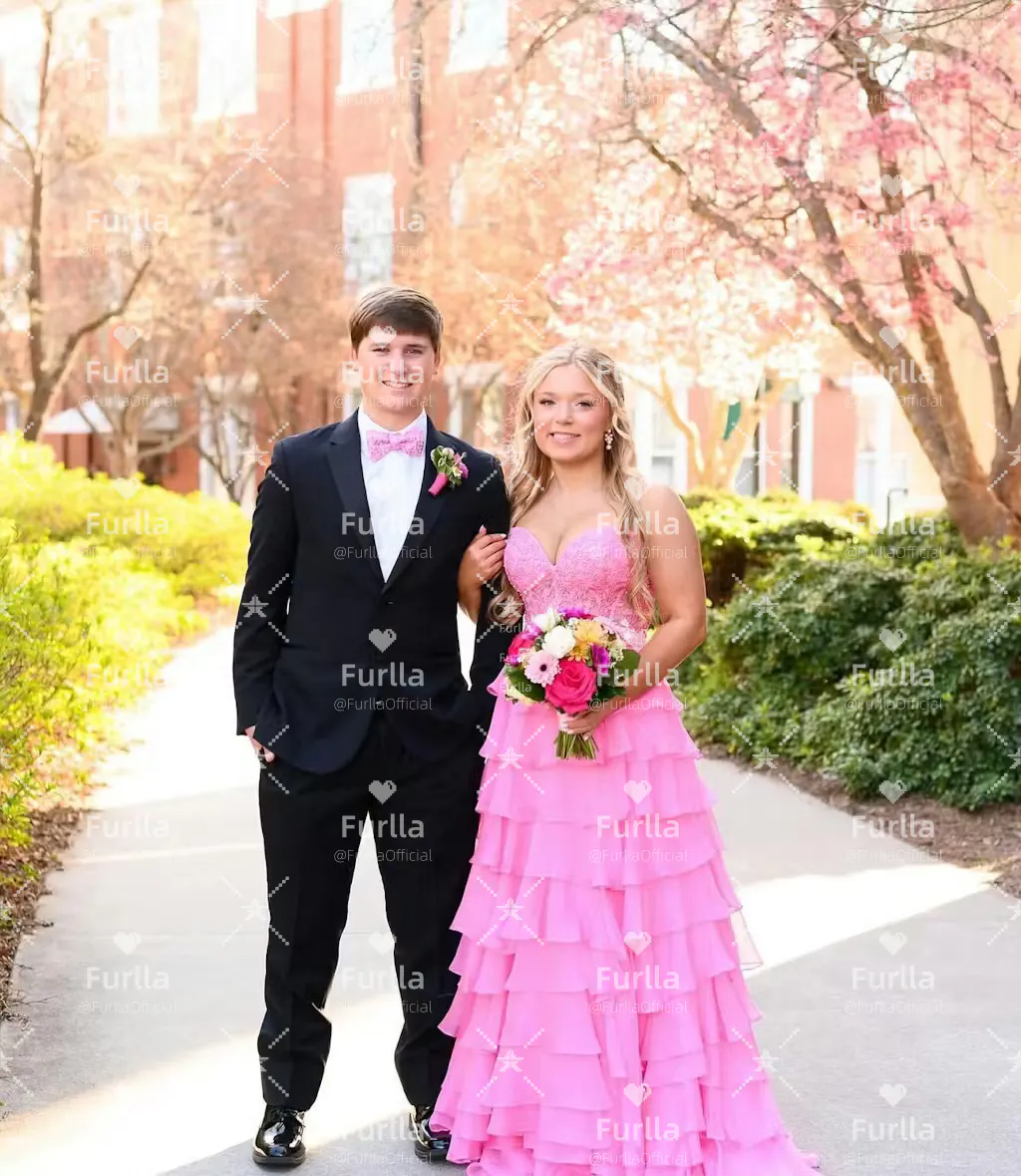 Brighten up the night in this Cute A-Line Sweetheart Prom Dress. Featuring a romantic sweetheart neckline and a flowy tiered chiffon skirt, this gown radiates playful charm and elegance. The flattering A-line silhouette and leg slit add a flirty touch, making it the perfect choice for prom or any special occasion where you want to shine with joy and grace.