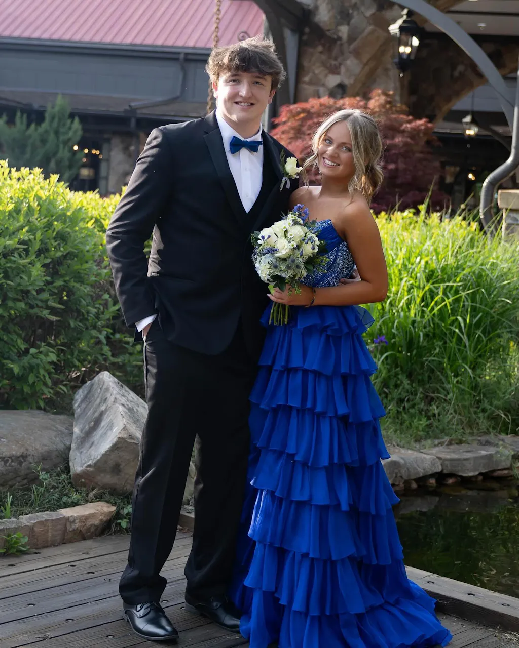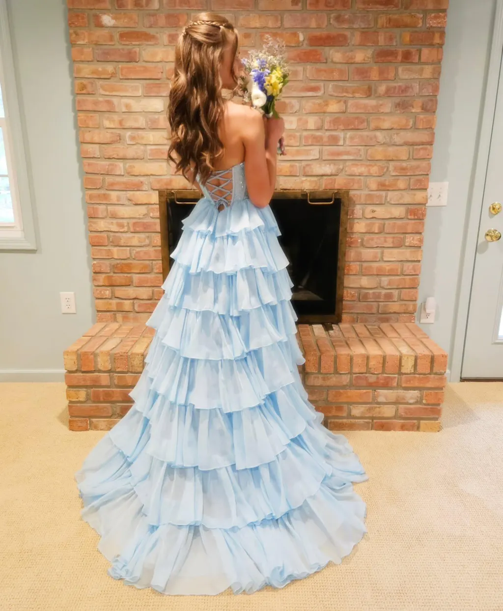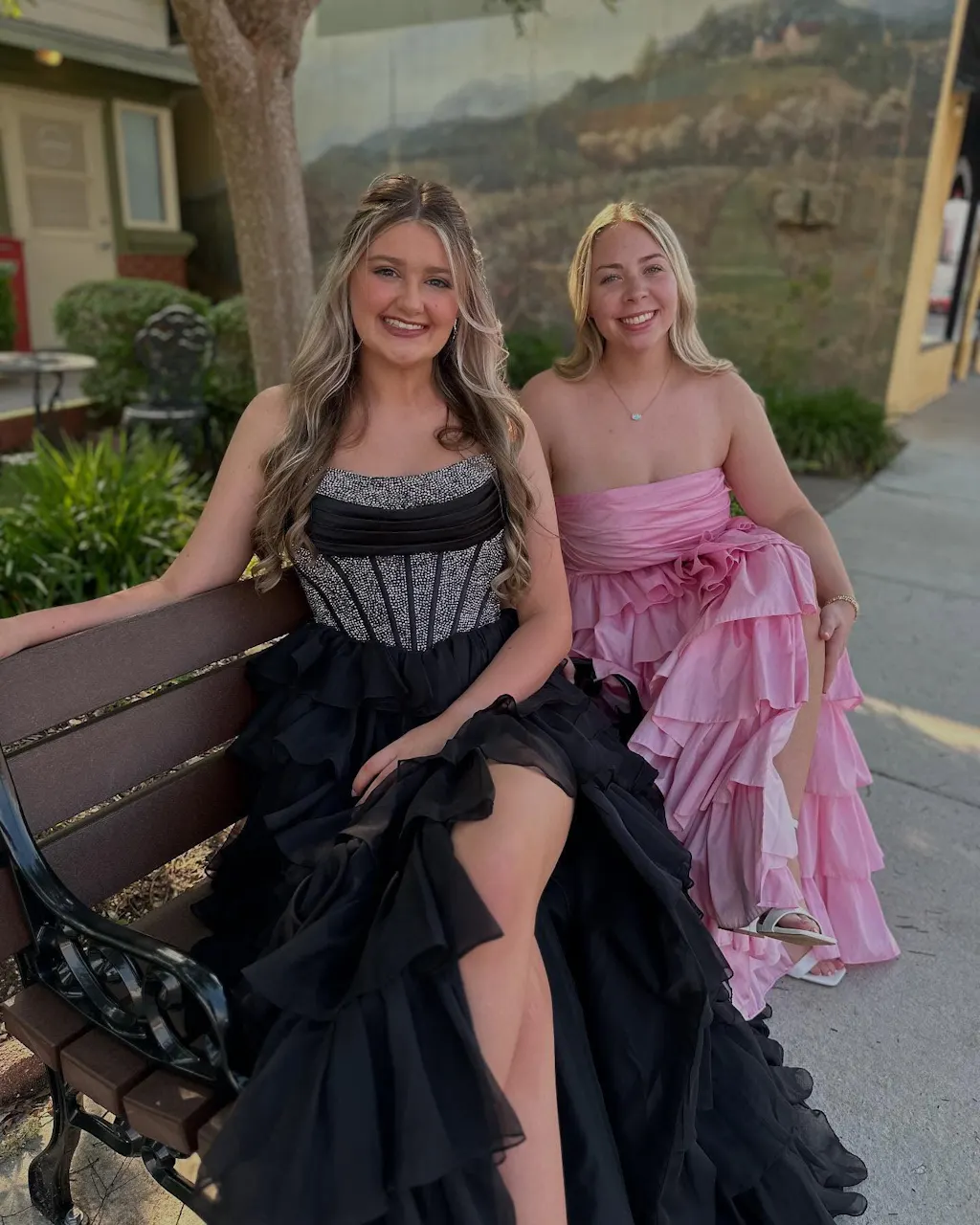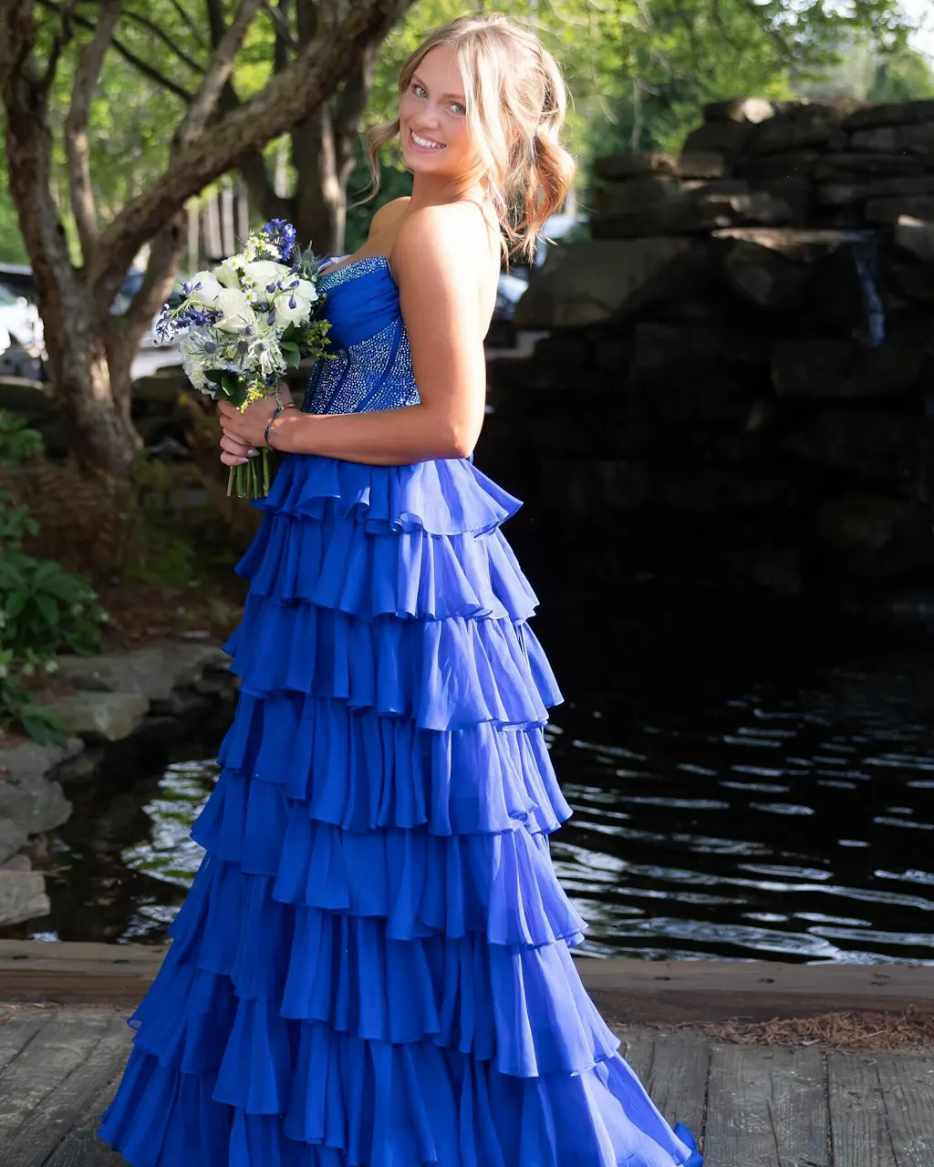 Shimmer with grace in this Strapless A-Line Prom Dress. Featuring a sparkling bodice and soft layered chiffon skirt, this gown combines timeless elegance with a modern twist. The strapless neckline highlights your shoulders, while the thigh-high slit adds a touch of allure-perfect for prom or any evening where you want to shine with sophistication.