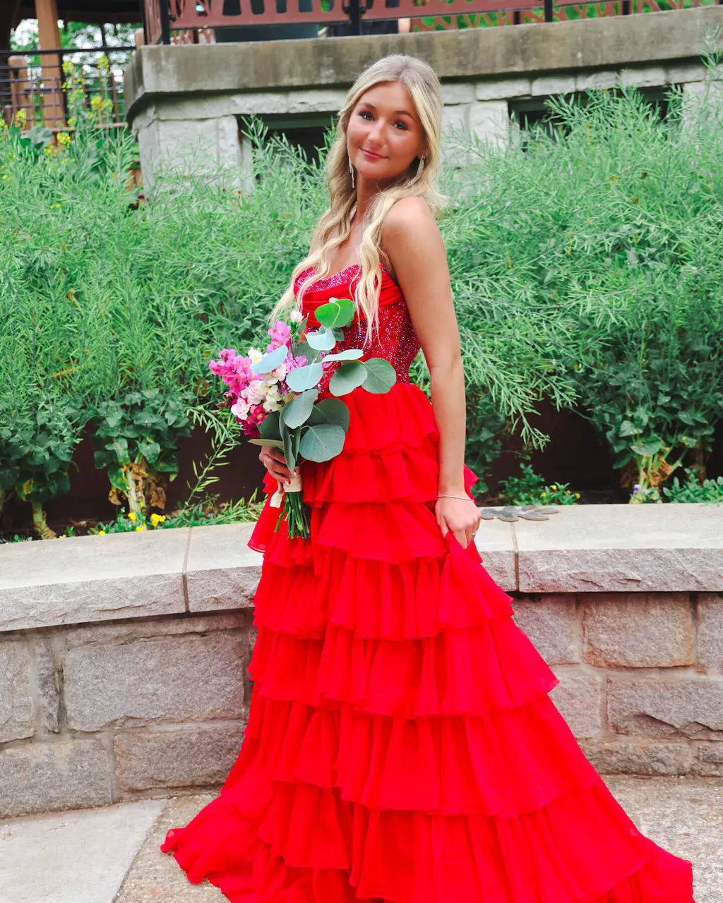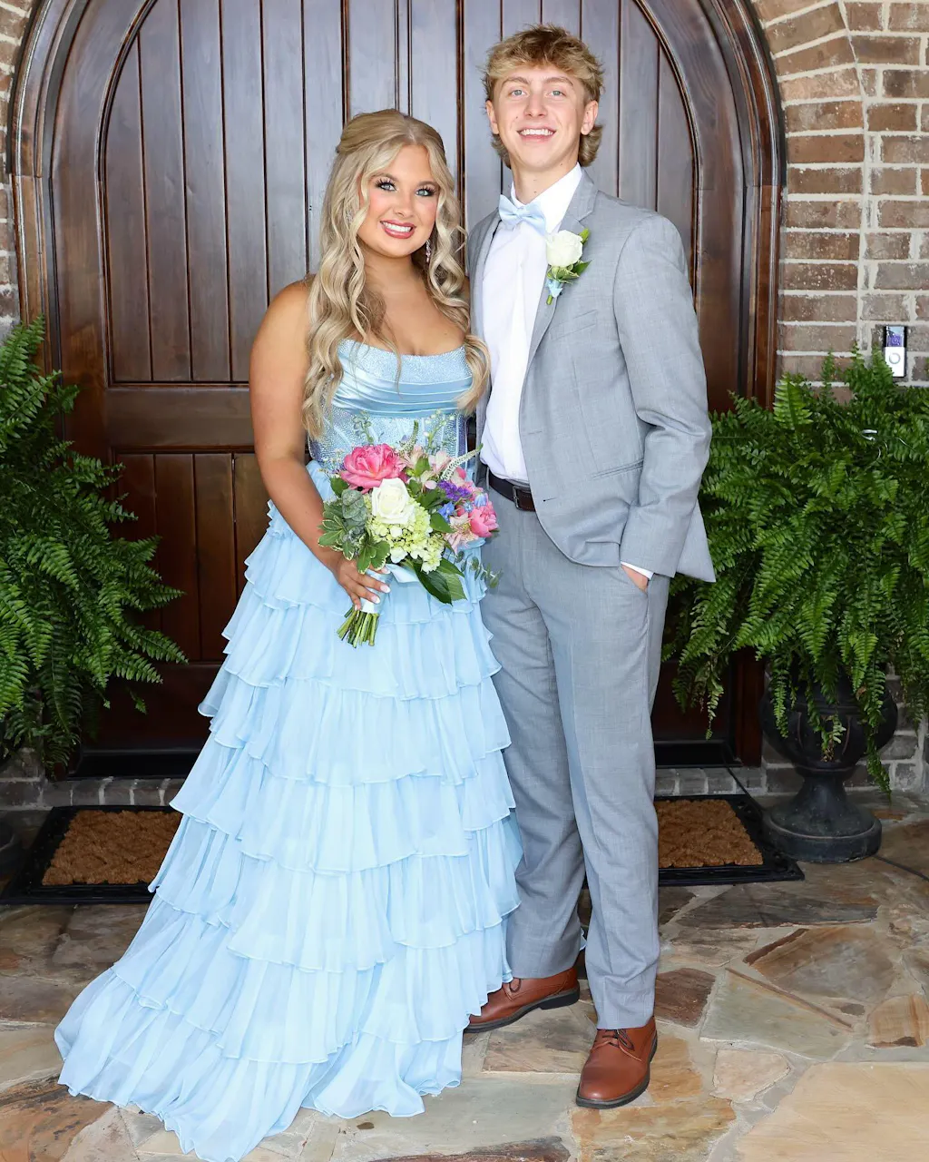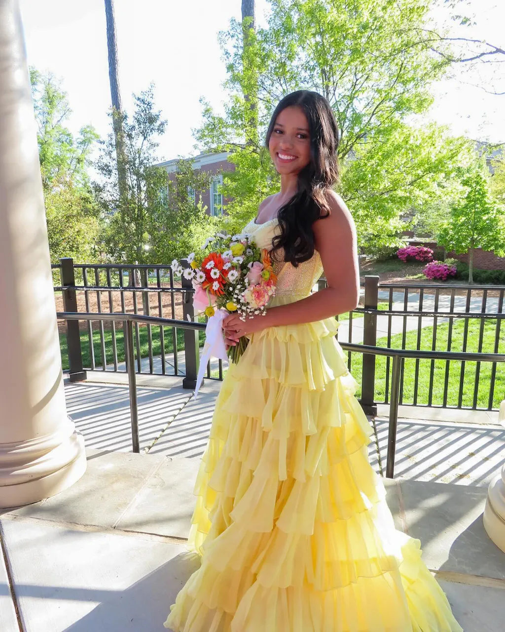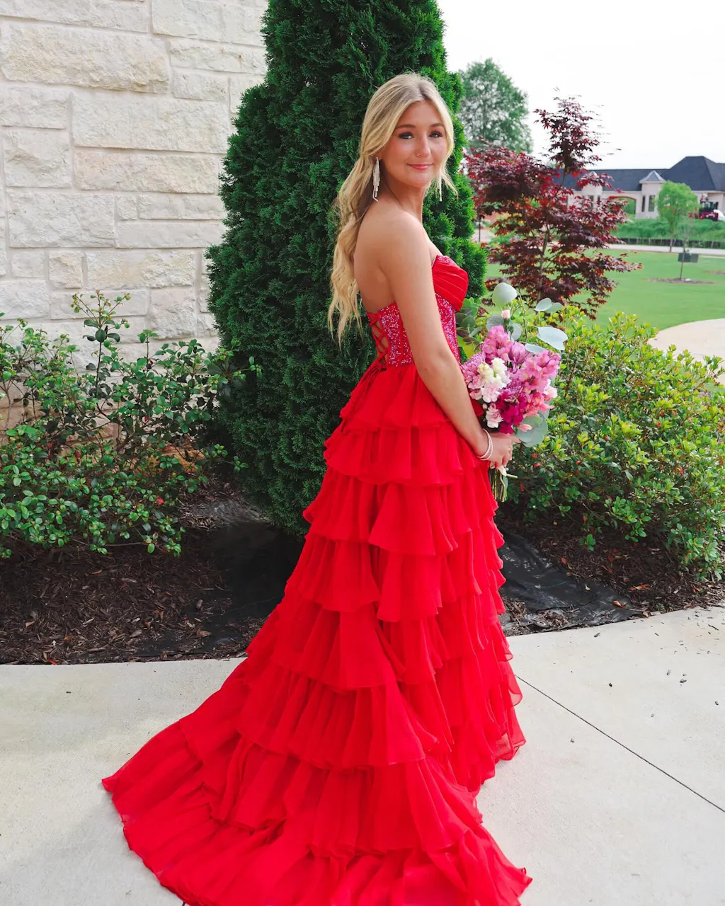 Shimmer with grace in this Strapless A-Line Prom Dress. Featuring a sparkling bodice and soft layered chiffon skirt, this gown combines timeless elegance with a modern twist. The strapless neckline highlights your shoulders, while the thigh-high slit adds a touch of allure-perfect for prom or any evening where you want to shine with sophistication.