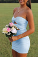 Elegant strapless yellow ruched bodycon homecoming dress with cutout detail. This vibrant mini features a curve-hugging silhouette, soft ruched fabric, and a flirty front cutout for added edge. Perfect for homecoming, summer parties, or any standout celebration.