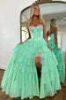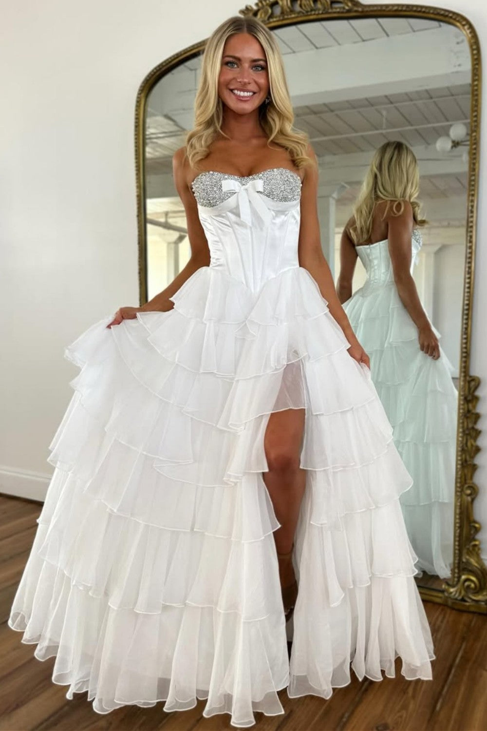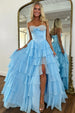 Glow with elegance in this stunning yellow A-line prom dress designed to make you shine. The beautifully sparkling bodice adds radiant glamour, while the tiered ruffle skirt creates graceful movement and a romantic silhouette. Crafted to flatter every figure, the A-line shape offers both comfort and timeless charm. Perfect for prom, formal events, or any special occasion, this dress brings together sophistication, sparkle, and feminine flair.