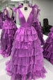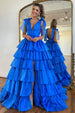 Turn heads instantly in this Glam Pink A-Line Tiered Ruffle V-Neck Prom Gown with High Slit, a vibrant statement piece made for bold entrances and unforgettable nights. The plunging V-neckline flatters the bust, while the fitted waist highlights your silhouette before flowing into a dreamy A-line skirt. Layers of soft, tiered ruffles add eye-catching volume and movement, creating a playful yet elegant look. A daring high leg slit finishes the gown with a touch of modern allure, giving you confidence with every step. Perfect for prom, pageants, and red-carpet moments, this pink ruffle gown effortlessly blends glamour, charm, and runway-worthy drama.