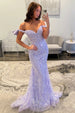 Shine in elegance with this glittering lavender mermaid prom dress. Designed with an off-the-shoulder neckline, it beautifully frames your shoulders and décolletage, while the fitted mermaid silhouette accentuates your curves. Sequined lace detailing adds dazzling sparkle and intricate texture, creating a luxurious, eye-catching finish. Perfect for prom, formal evenings, or special occasions, this gown combines romance, glamour, and sophistication in one unforgettable look.