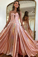 Shine in this glittery pink metallic A-line prom dress. The sweetheart neckline adds a romantic touch, while the flowing skirt and high leg slit create elegant movement and modern allure. Perfect for prom, galas, or any formal event where you want to stand out with sparkling sophistication.