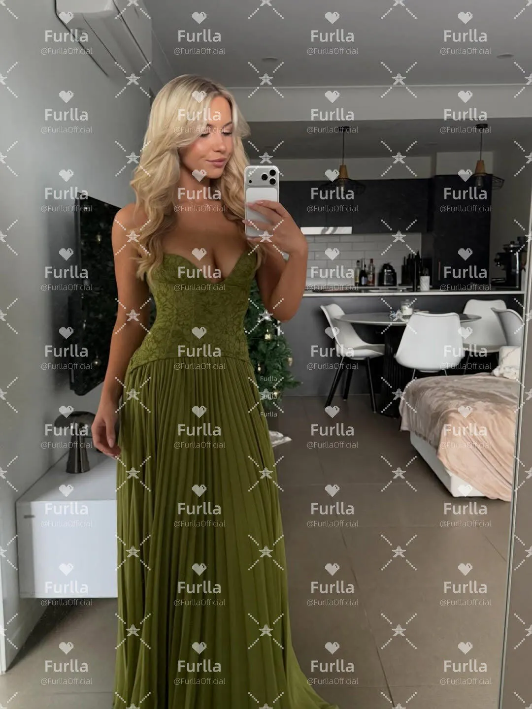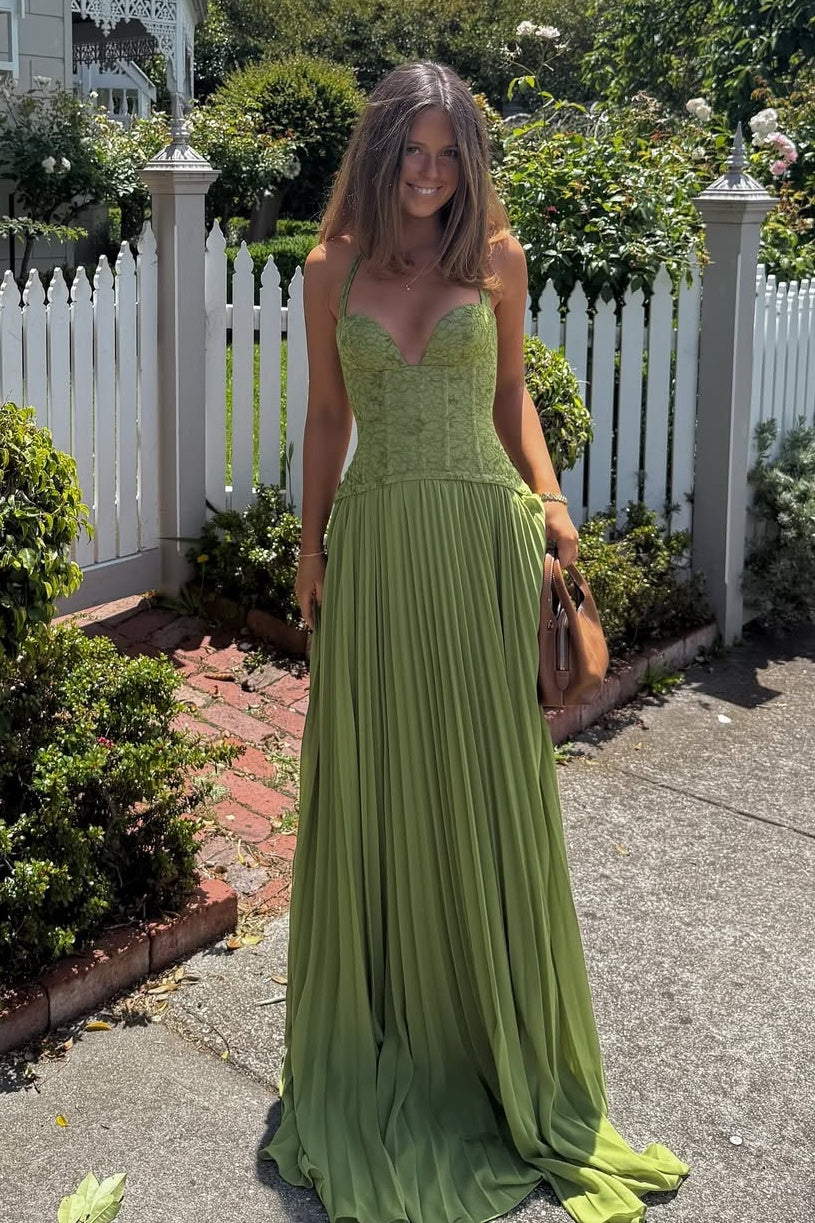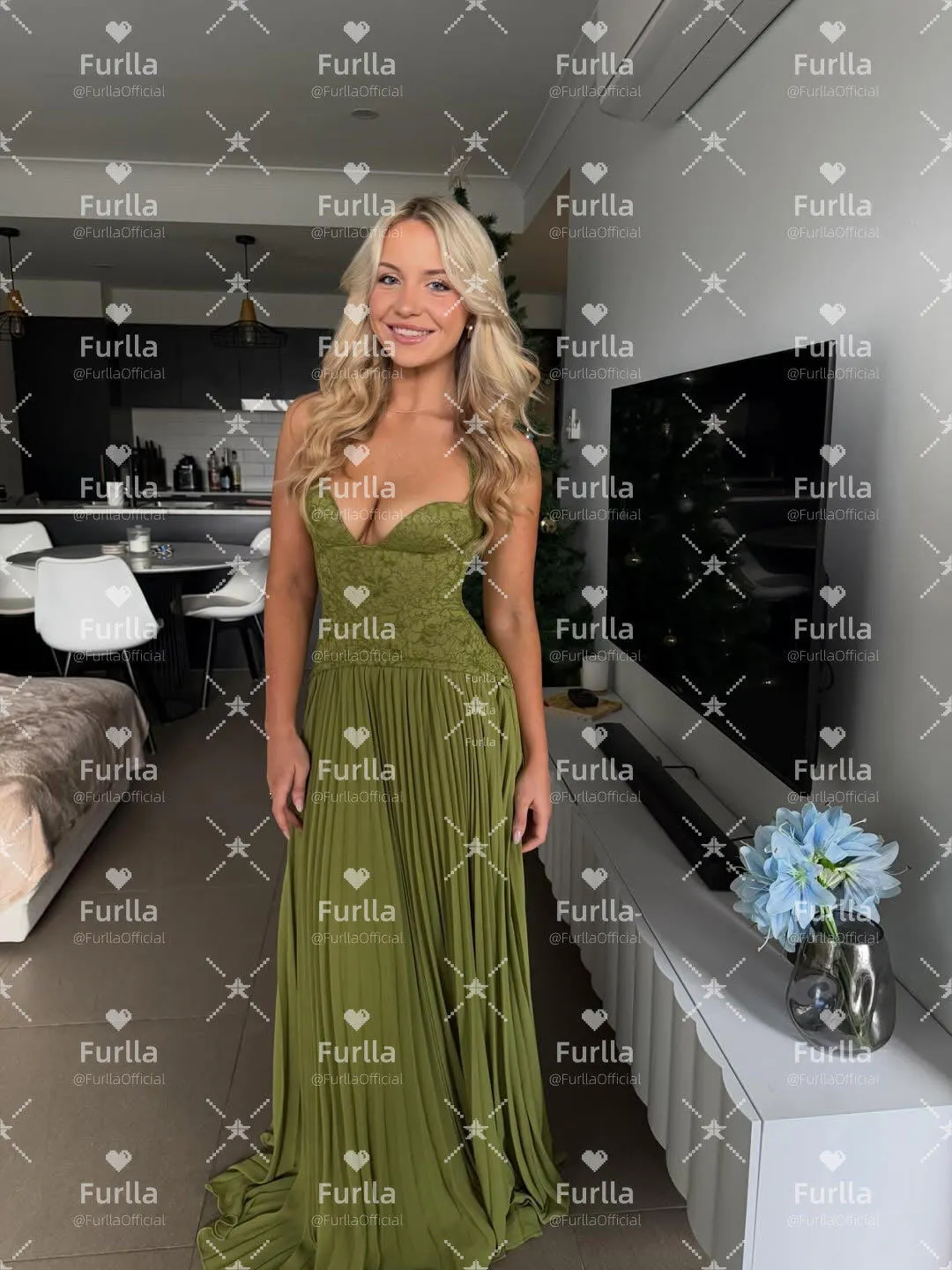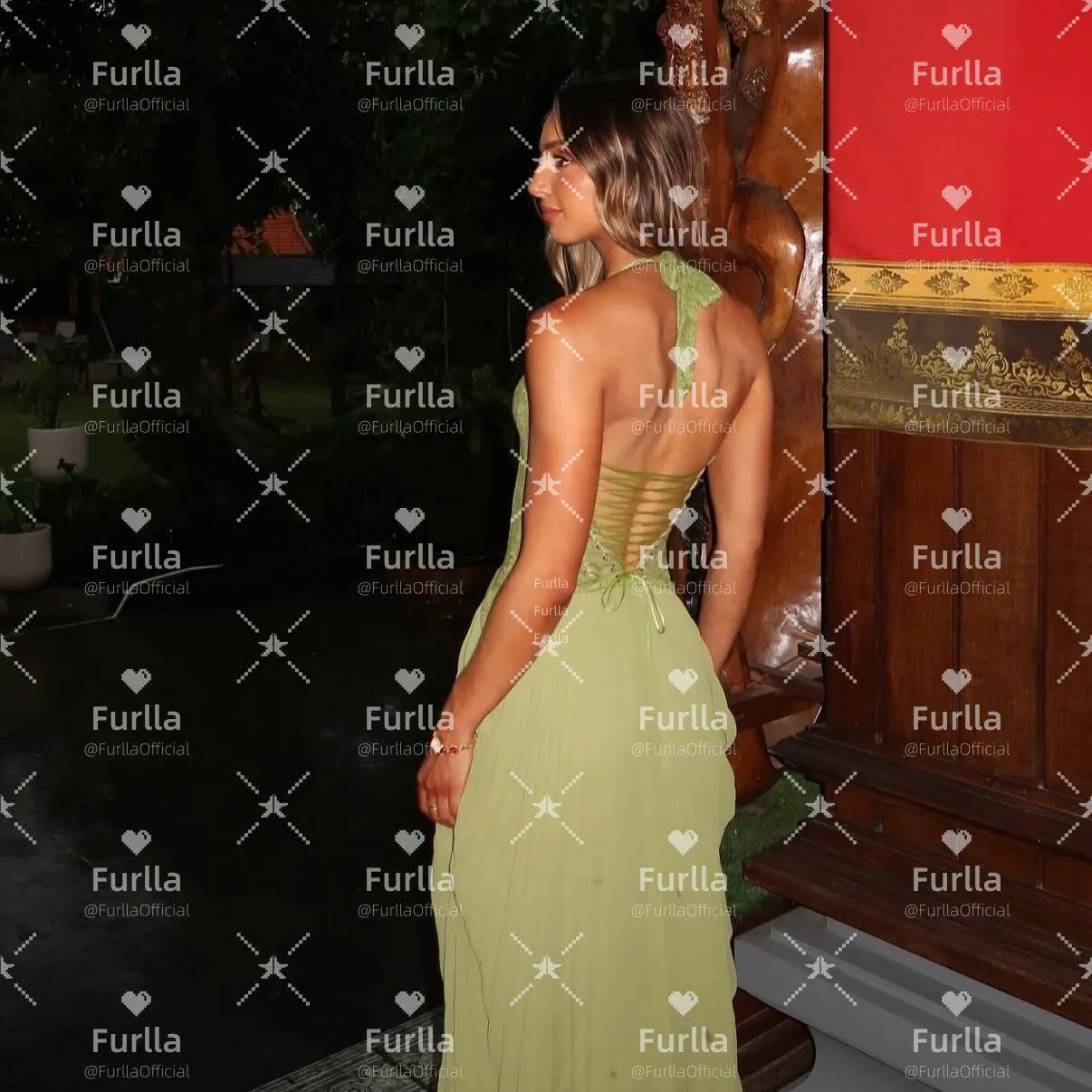 Turn heads in this gorgeous A-line prom dress. Featuring a halter neckline and a structured lace corset bodice, it beautifully accentuates the waist while highlighting the shoulders. Crafted in a rich green hue, the flowing skirt is enhanced with delicate ruffle details for graceful movement and romantic charm. Perfect for prom or formal occasions, this dress combines elegance, sophistication, and standout style.