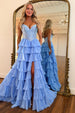 This Light Blue Sweetheart Beaded Top Corset Tiered Ruffle Prom Dress with Slit features a romantic sweetheart neckline and a structured corset bodice with a beautifully beaded top for refined sparkle. The flowing skirt cascades in soft tiered ruffles, creating graceful volume and movement, while the stylish slit adds a modern touch of allure. Finished in a delicate light blue hue, this gown is perfect for prom, formal events, and special occasions where elegance meets dreamy charm.