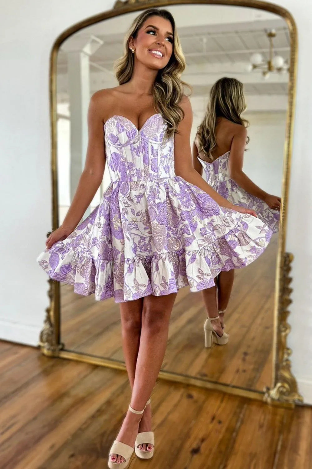 Step into a garden of elegance with this Lovely Sweetheart A-Line Short Floral Print Dress. The flattering sweetheart neckline beautifully frames your décolletage, while the airy A-line silhouette skims gently over your figure for a graceful, feminine look. Featuring a charming floral print in soft, fresh colors, this dress evokes the spirit of spring and summer celebrations. Perfect for homecoming, garden parties, or any special event where you want to feel sweet, confident, and effortlessly stylish.