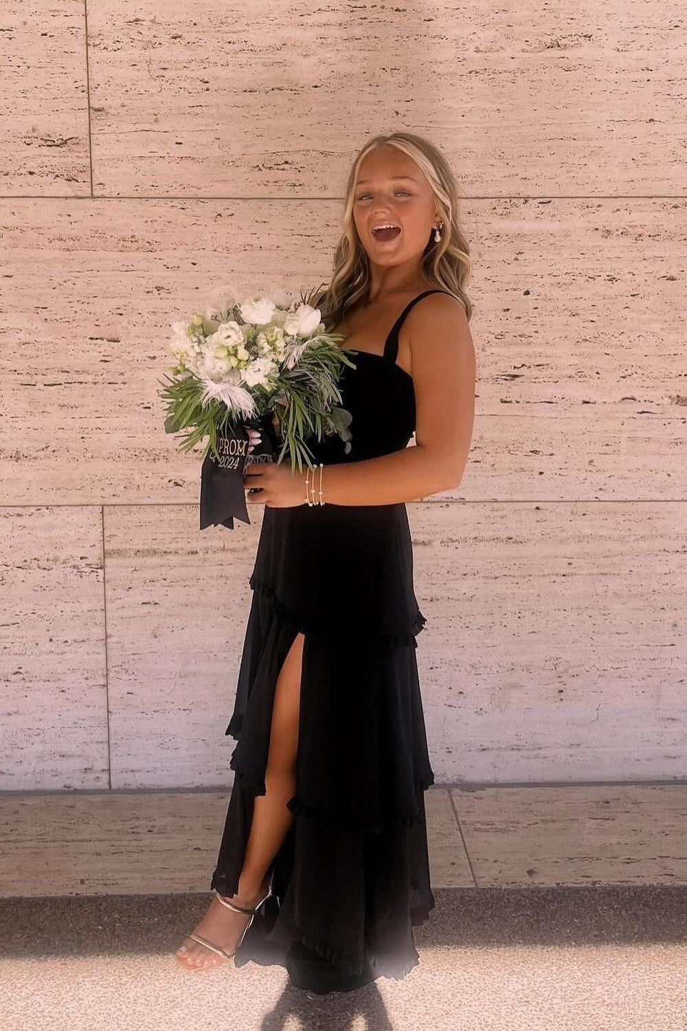 Make a playful yet elegant statement in this pink tiered ruffle prom dress, designed to captivate from every angle. The charming square neckline adds a soft, feminine touch, while the lace-up back offers an adjustable, figure-flattering fit. Cascading tiered ruffles give the skirt beautiful volume and movement, and the high thigh slit adds a modern, flirty edge. Perfect for prom, pageants, and special occasions, this gown blends sweetness, drama, and standout style in the prettiest shade of pink.