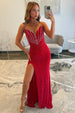 Command attention in this striking red mermaid prom dress designed for bold glamour. The plunging V-neckline creates a dramatic, flattering focal point, while the figure-hugging mermaid silhouette accentuates your curves with elegance. Intricate beaded embellishments add radiant sparkle throughout, and the daring high slit delivers modern allure and effortless movement. Perfect for prom, formal events, or any special occasion where you want to make a powerful, unforgettable impression.