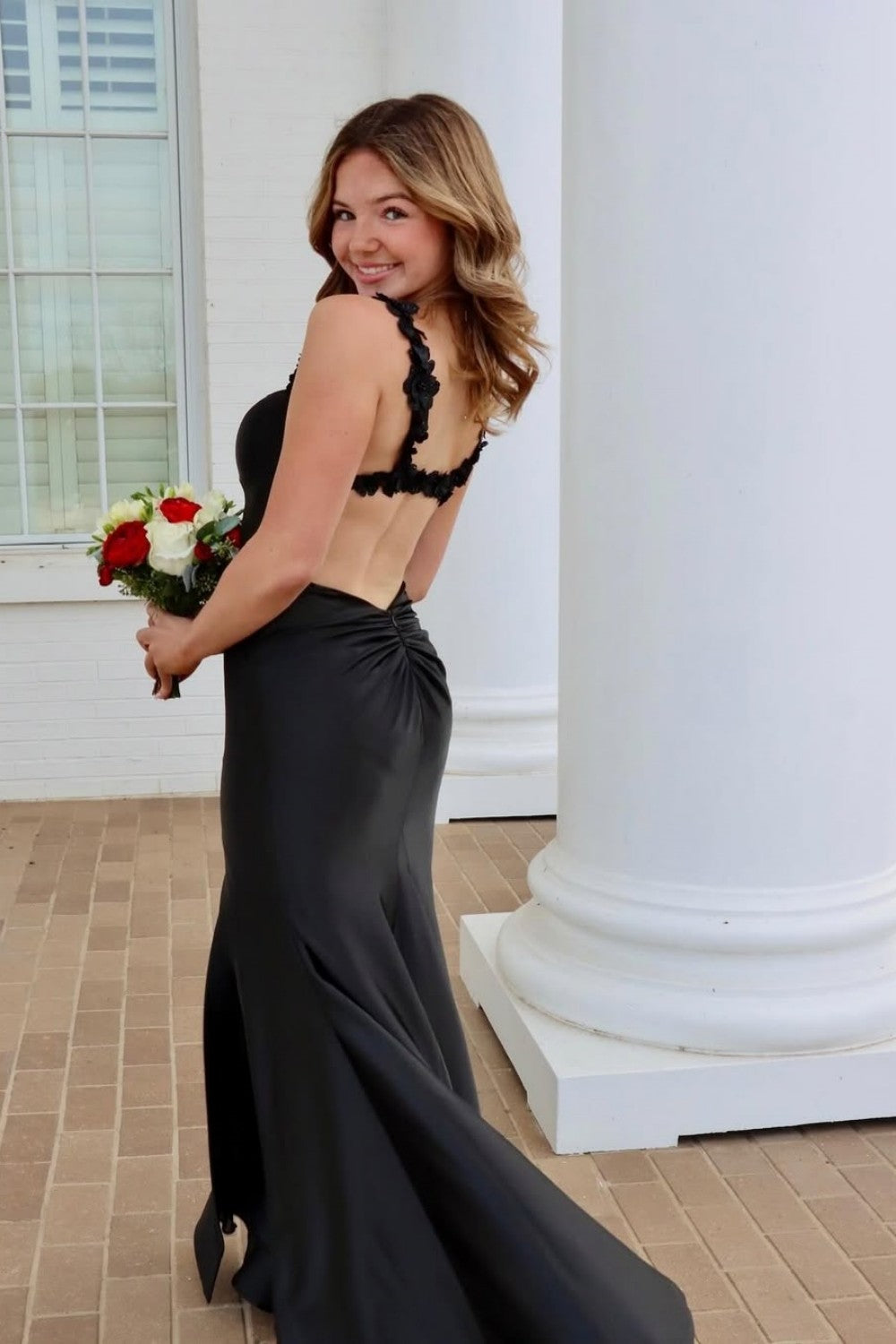Turn up the romance in this striking red satin mermaid prom dress, featuring delicate floral strap detailing that adds a soft, feminine touch to its bold silhouette. The smooth satin fabric creates a sleek, radiant finish, while the curve-hugging mermaid design enhances your figure beautifully. A dramatic high leg slit adds movement and modern allure, making this gown perfect for prom, pageants, and any formal night where you want to make a stunning, unforgettable entrance.