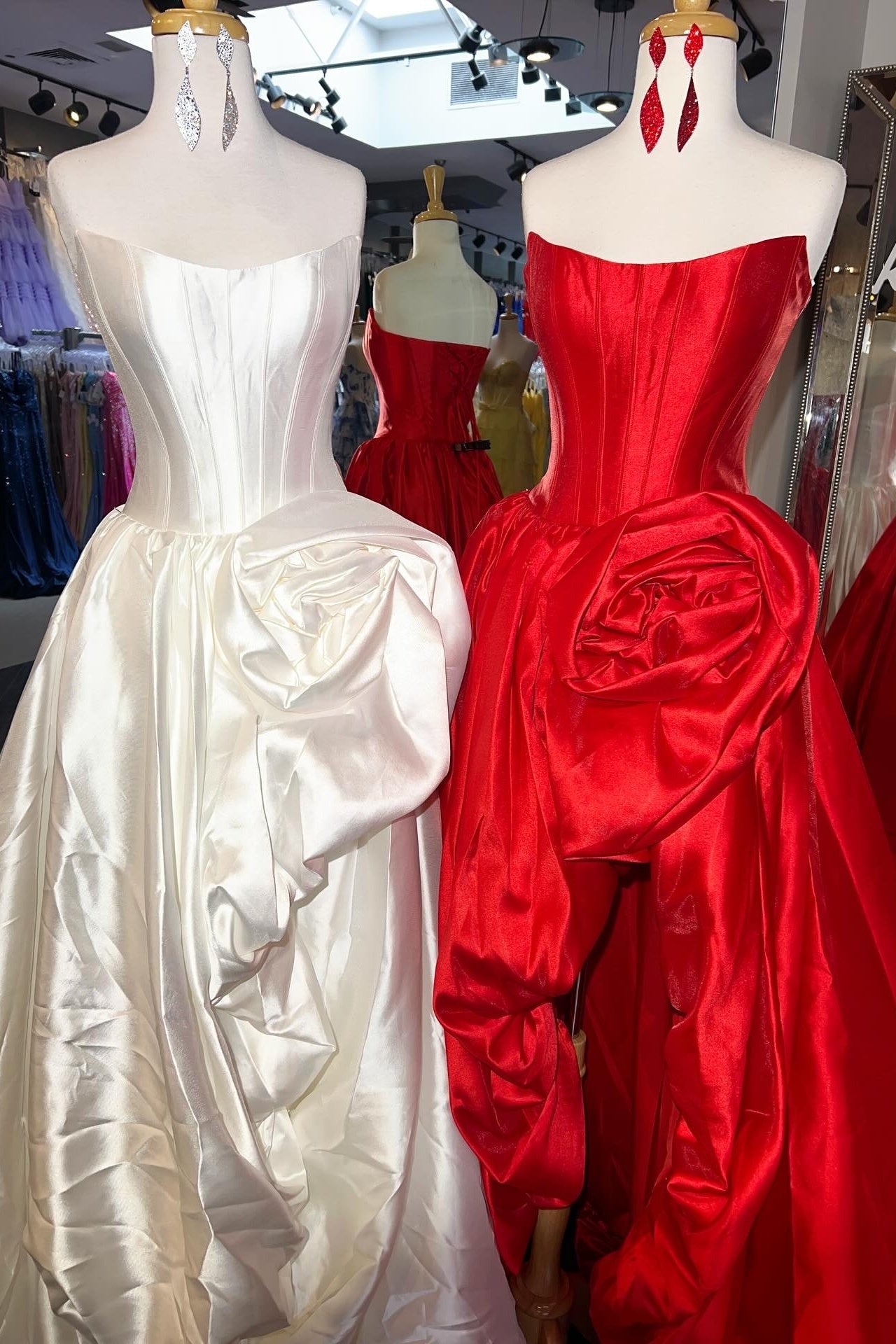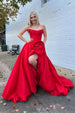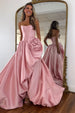Step into enchanting elegance with this romantic A-line prom gown, crafted from luxurious satin for a smooth, polished finish. The strapless neckline beautifully frames your shoulders, while delicate rose embellishments add a touch of feminine charm and sophistication. The flowing A-line skirt provides graceful movement, making it perfect for prom, pageants, or formal events. This gown combines timeless style with romantic details for a truly unforgettable look.