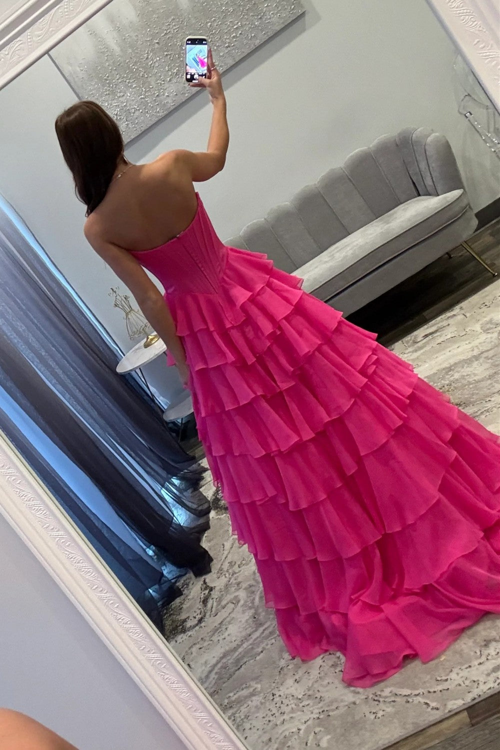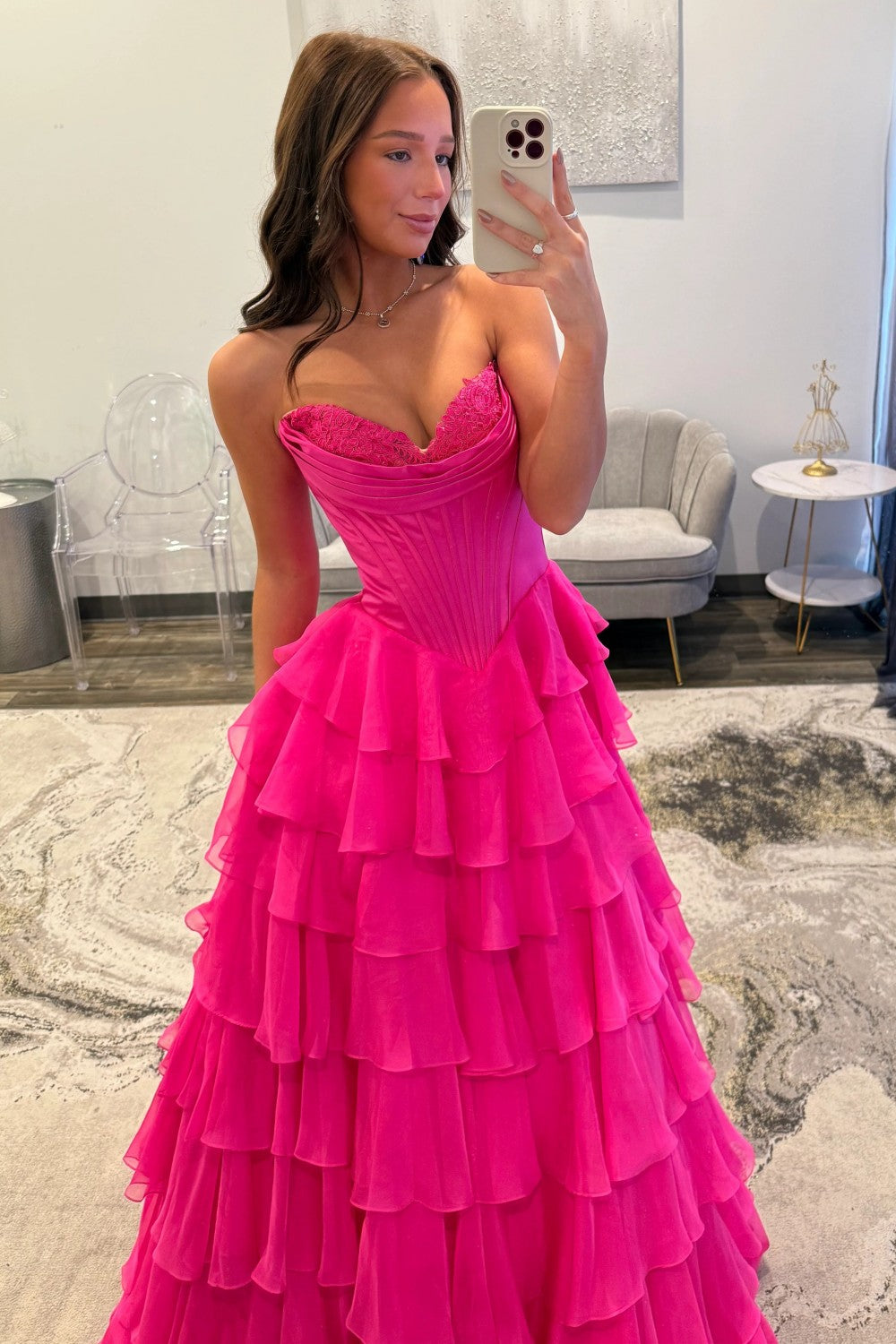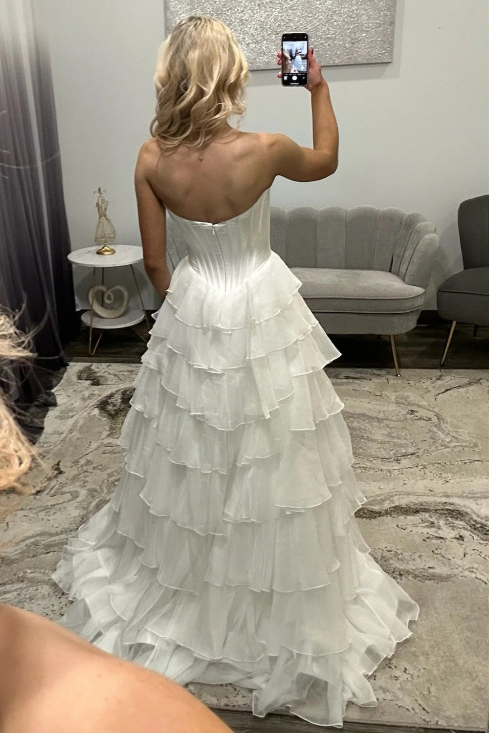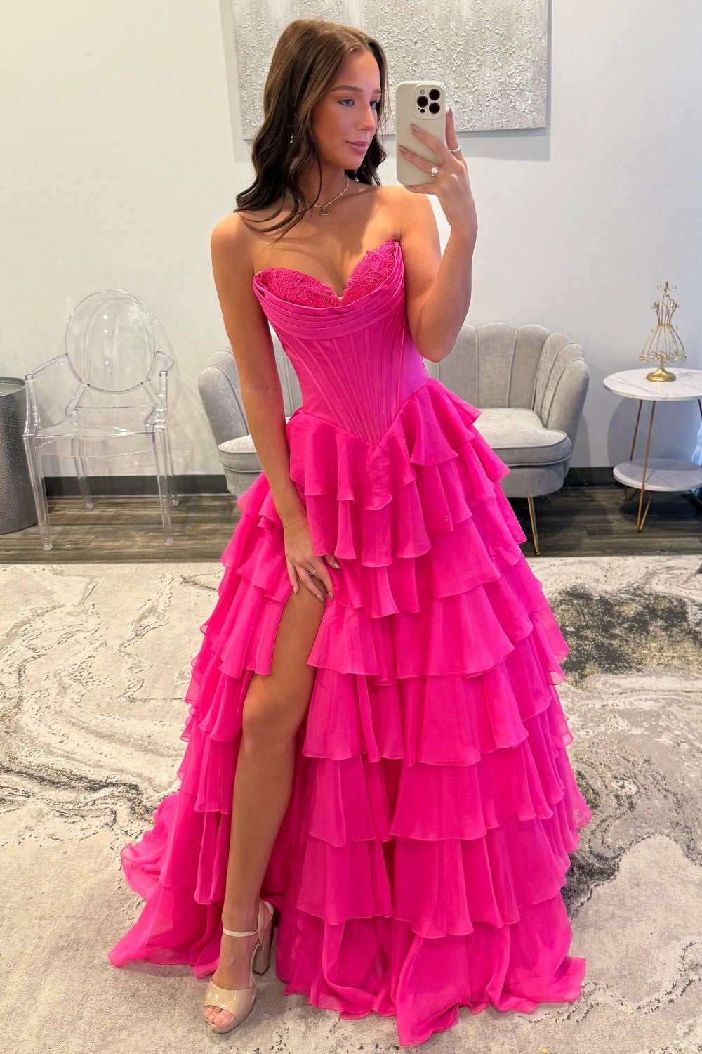 Step into a fairytale moment with this romantic yellow ball gown prom dress. Featuring a sweetheart neckline and a structured corset bodice, it beautifully shapes and supports your silhouette. The airy chiffon skirt flows into tiered ruffles, creating dreamy volume and graceful movement with every step. Radiant and feminine, this gown is perfect for prom, formal events, or any special occasion where you want to shine with elegance and charm.