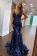 Make a stunning entrance in this sparkly navy blue mermaid prom dress, designed with delicate spaghetti straps and a sleek, curve-hugging silhouette. Covered in shimmering sequins from top to hem, this gown delivers radiant shine and elegant drama with every step. The fitted bodice flatters your figure, while the flared mermaid skirt adds graceful movement. Perfect for prom, galas, and evening events, this dress offers timeless glamour with a bold, show-stopping finish.