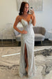 Shine like a star in this dazzling silver mermaid prom dress designed for maximum glamour. Featuring a deep V-neckline that creates a bold, flattering silhouette, this gown is adorned with intricate beaded embellishments that catch the light from every angle. The fitted mermaid cut enhances your curves, while the front slit adds modern allure and allows effortless movement. Perfect for prom, formal evenings, or any special occasion where you want to make an unforgettable entrance.
