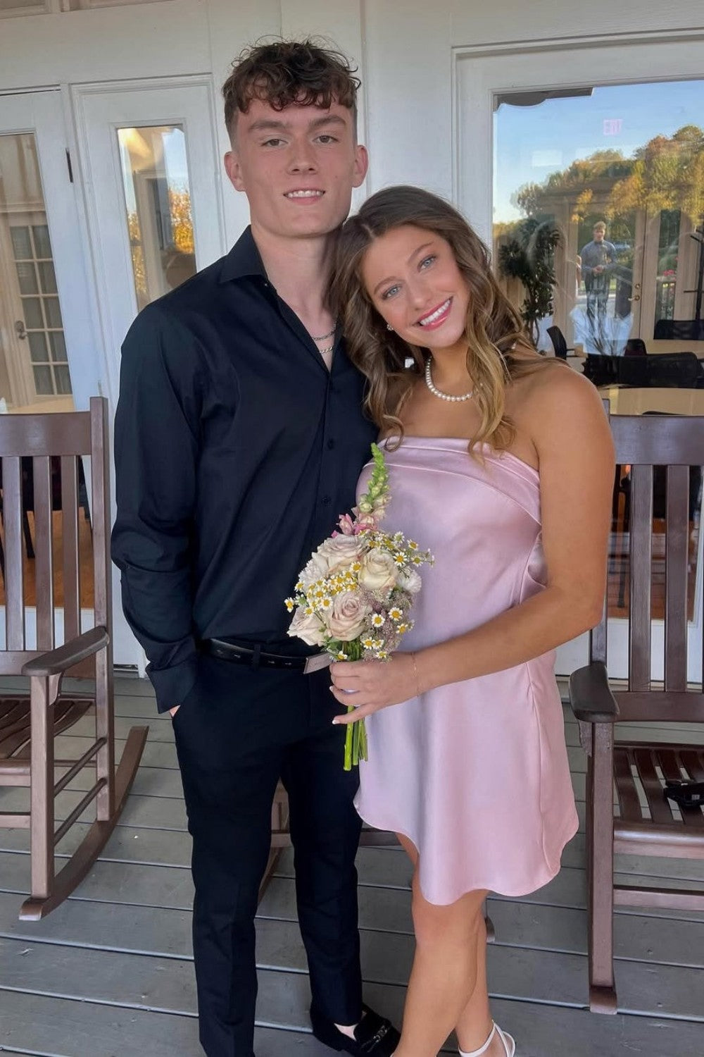 Shine in this Stunning A Line Strapless Light Pink Mini Party Dress with Ruched. The flattering A-line silhouette and mini length create a playful, flirty look, while the strapless neckline adds a touch of elegance. Beautiful ruched detailing gives the dress texture and style, making it perfect for parties, homecoming, or any special occasion where you want to turn heads.