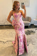 Make a captivating entrance in this stunning pink floral mermaid prom dress. The strapless neckline beautifully showcases your shoulders, while the fitted mermaid silhouette highlights your curves with elegance. Delicate floral patterns add a touch of romance, complemented by a charming bow detail for feminine flair. A daring side slit provides effortless movement and a hint of allure, making this gown perfect for prom, formal events, or any special occasion where you want to shine.