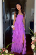 Designed for the girl who loves elegance with a modern twist, this gown features a timeless strapless neckline paired with a flattering A-line silhouette that flows effortlessly with every step. The rich purple hue adds sophistication, while the cascading ruffle detail along the split front brings movement, charm, and just the right touch of drama.