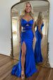 Make a stunning entrance in this Stylish Royal Blue Satin Mermaid Prom Dress, featuring delicate spaghetti straps, a chic waist hollow cut‑out, and a curve‑hugging mermaid silhouette with a high slit—its lustrous fabric and regal hue ensure you’ll dazzle all night long.