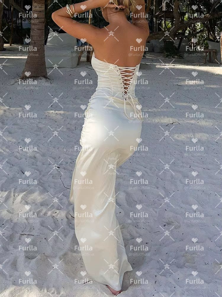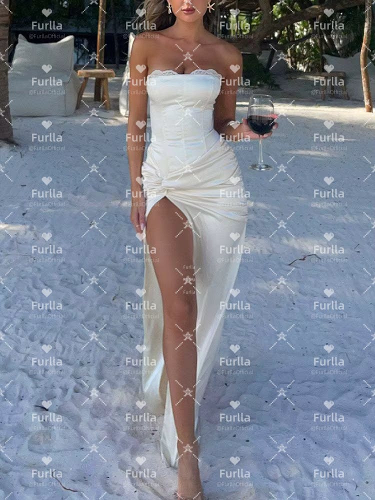 Command attention in this stylish white sheath prom dress. Featuring a strapless neckline and a structured corset bodice, it sculpts the waist for a sleek, figure-flattering silhouette. The daring front split adds a touch of drama and modern allure, while the floor-length design ensures timeless elegance.