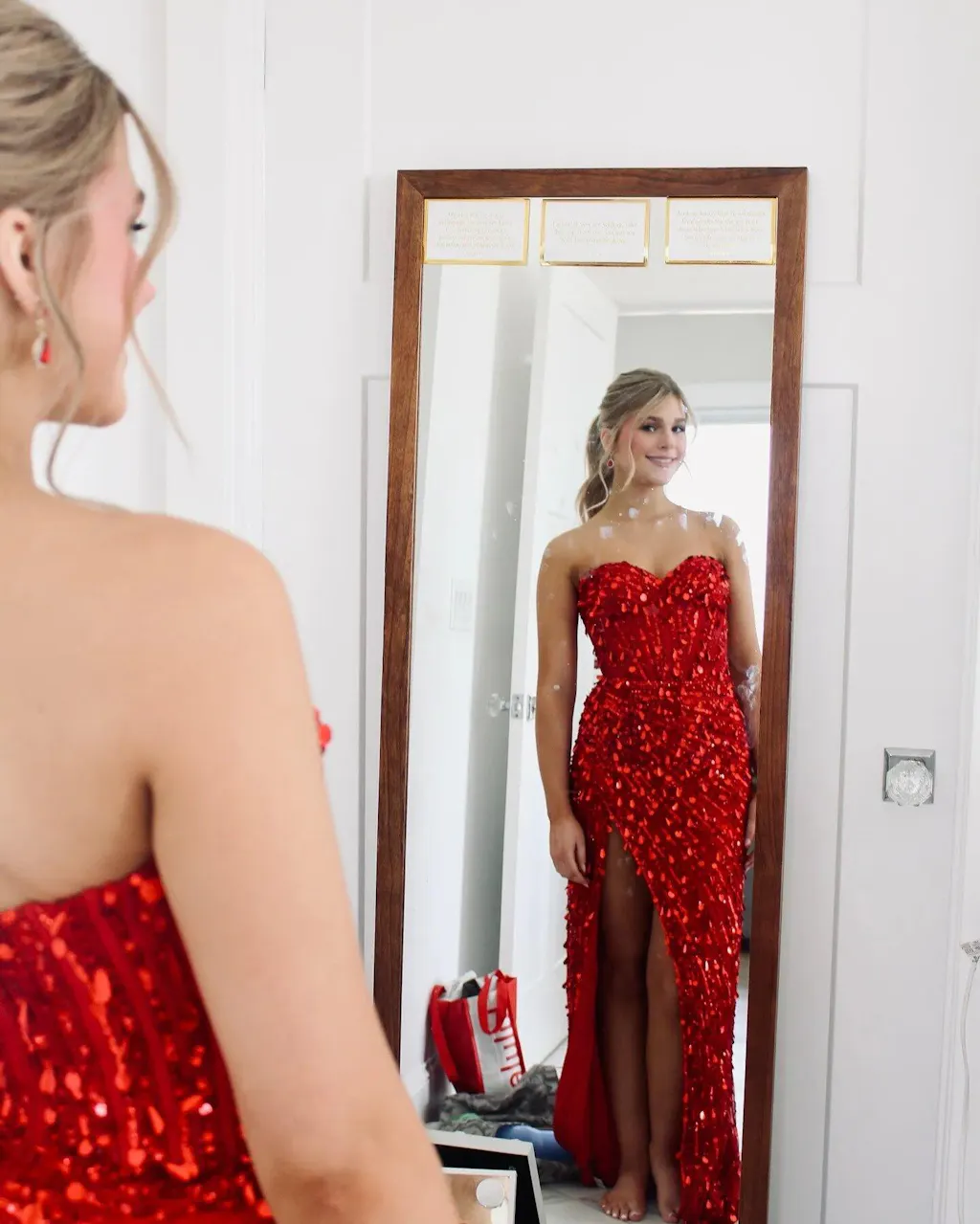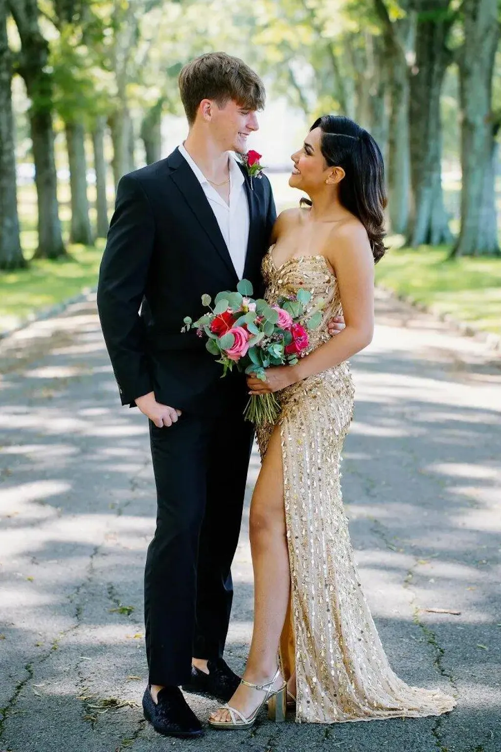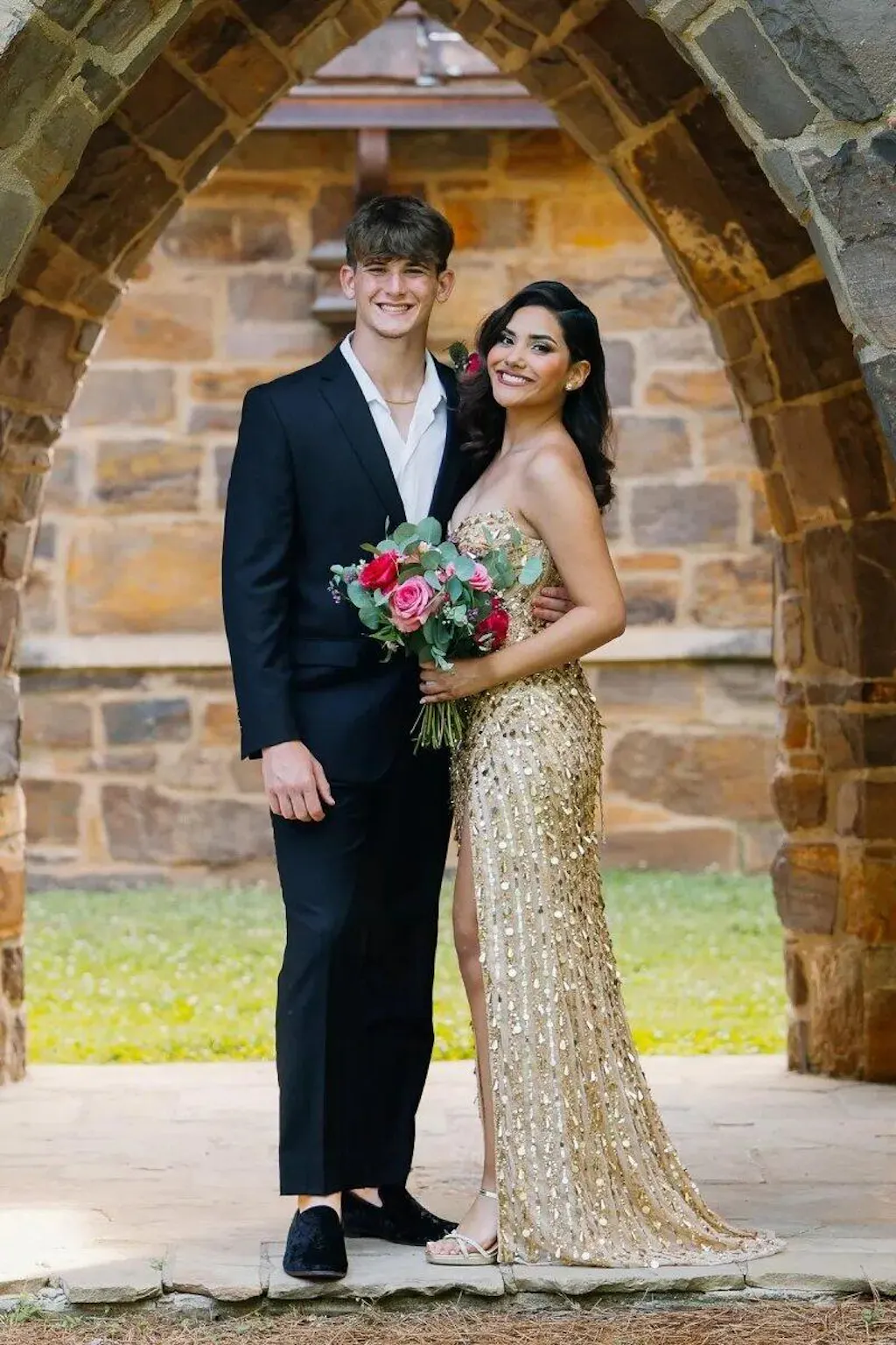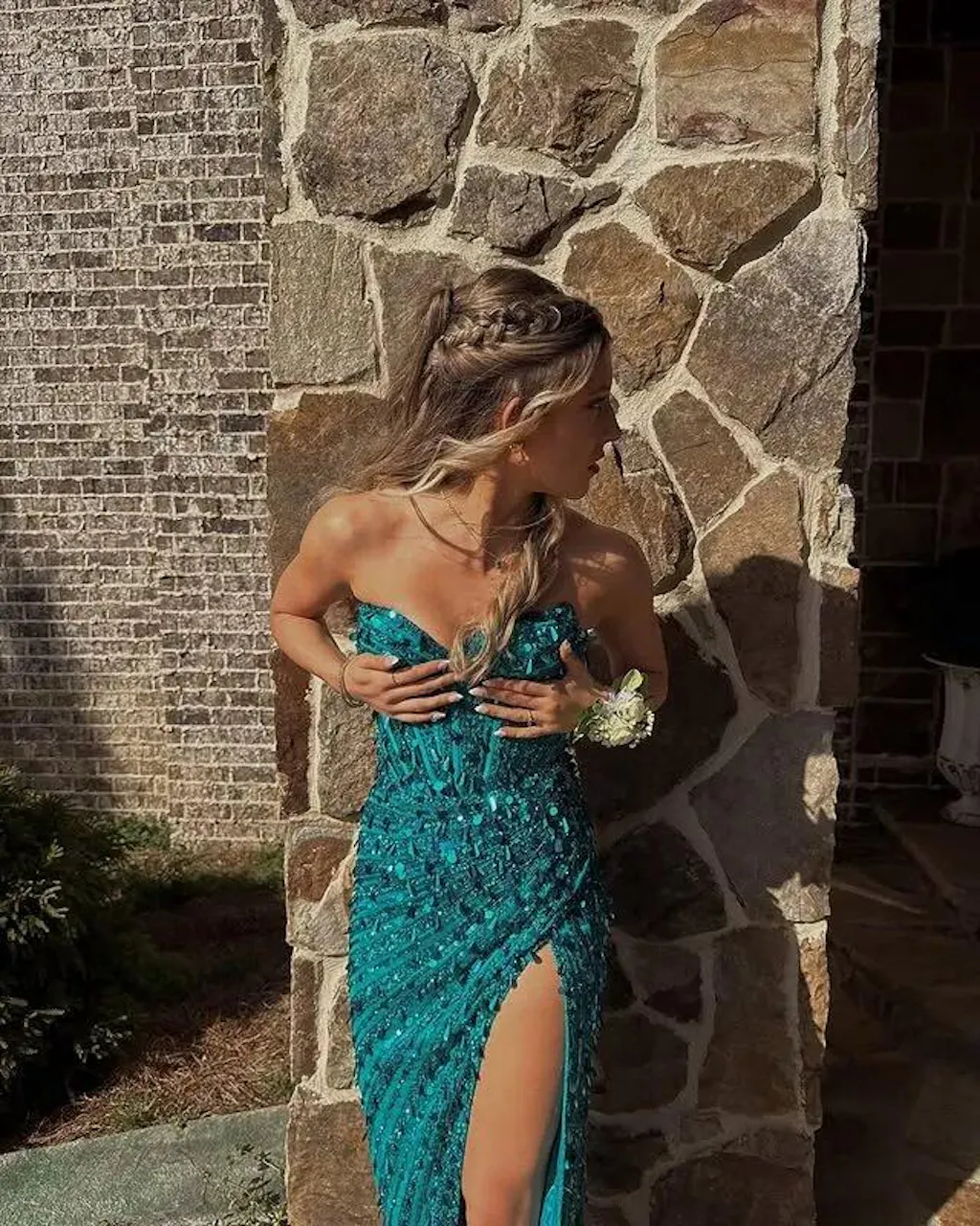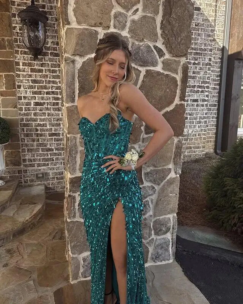 I felt comfortable and confident in this dress all night. The slit made walking easier and the top stayed in place. Not too flashy, but still sparkly enough for prom.