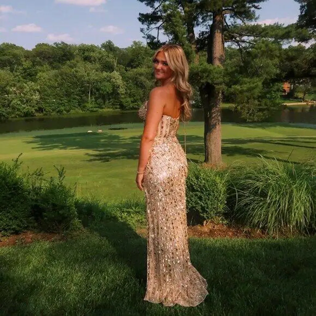 This dress sparkles so much in person. The sequins look amazing under the lights and I got so many compliments at prom.