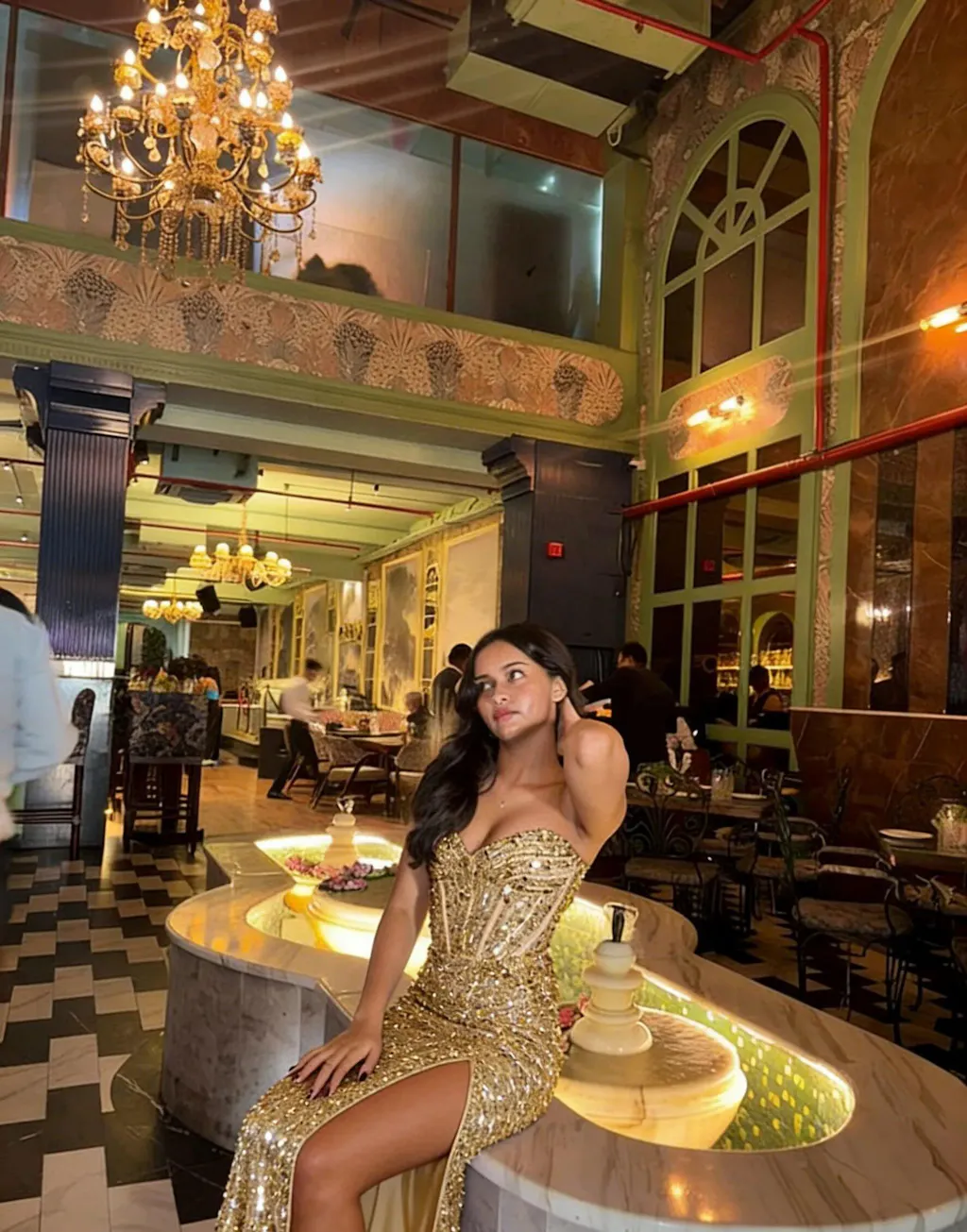 Sequins looked really good under the lights and in photos. Fit was flattering and stayed in place.