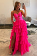 Playful ruffle details bring movement and texture to the design, while the stylish keyhole accent adds a hint of modern allure. Finished in a vibrant hot pink shade, this long prom dress radiates confidence, fun, and youthful elegance. Perfect for prom, formal parties, evening events, or special occasions, it’s the ideal choice for those who love a trendy yet feminine look.