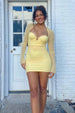 Glow with confidence in this Trendy Sheath Sweetheart Yellow Short Homecoming Dress with Pearls. The sleek sheath silhouette highlights your figure, while the sweetheart neckline brings a touch of romance. Elegant pearl embellishments add a chic and luxurious finish, making this vibrant yellow dress the perfect blend of playful and sophisticated for homecoming, parties, or any special occasion.